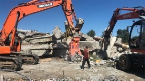 • измельчение крупных частей блоков и плит после завершения первого этапа демонтажных работ;